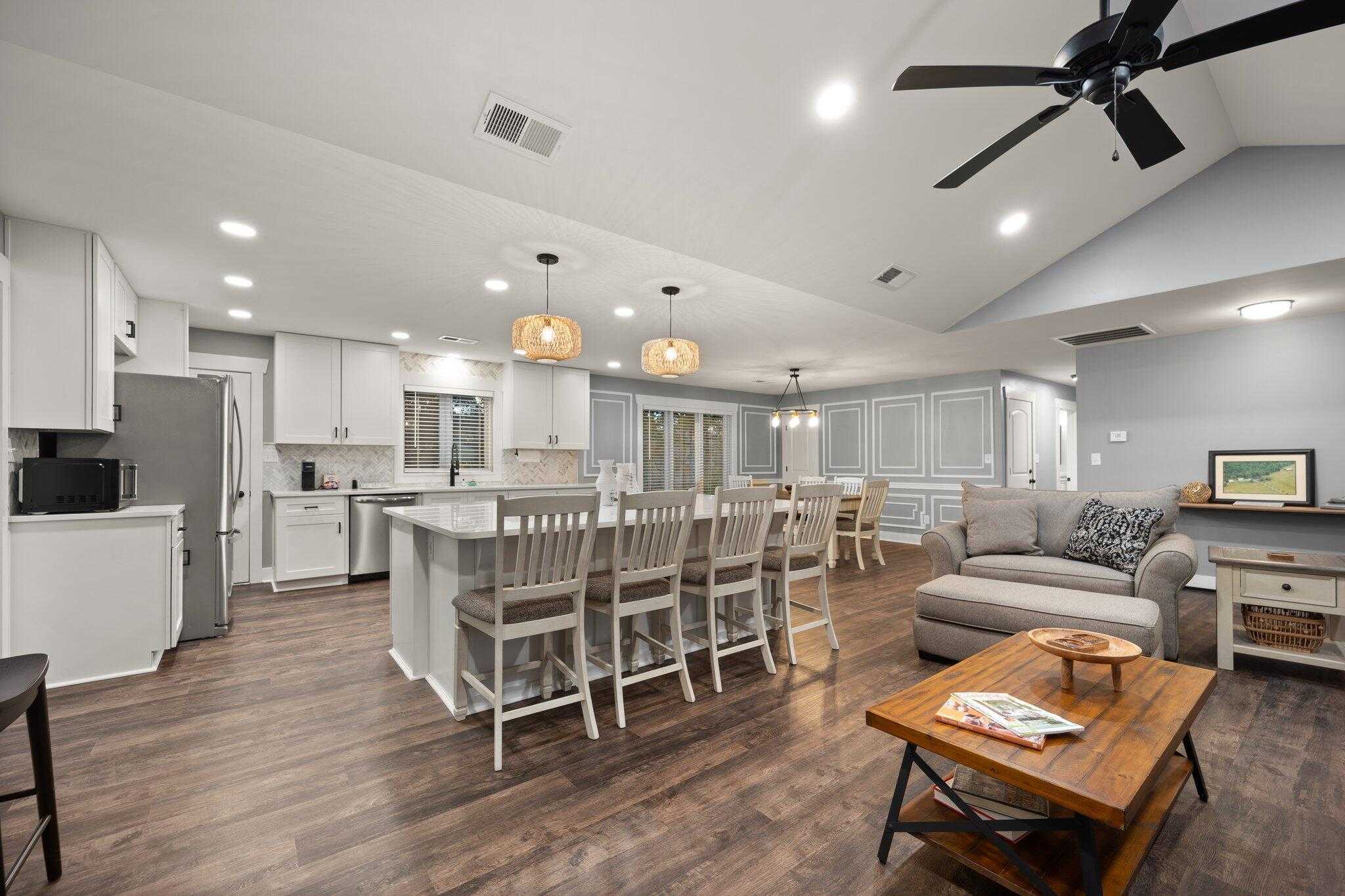 Welcome to Hidden Falls Farm, where breathtaking Central KY scenery surrounds you at every turn. Nestled just 5.5 miles from the Cumberland Pkwy, this property boasts an unobstructed view of Green River Knob--the tallest point in KY's Knobs region, marking the boundary of Pulaski/Casey counties. Featuring 25.89 acres of fenced farmland, with a spring-fed pond ideal for cattle, horses, or other livestock. The brick ranch-style home has been completely modernized, offering over 4,300 sq ft. This 5-bedroom, 3-bath retreat will captivate you from the moment you step inside. Entertaining is a breeze with the home's 2nd kitchen & laundry area in the fully finished walkout basement, perfect for multi family living, a mother-in-law suite, or hosting guests.The 24x40, insulated, 3-bay detached garage is an ideal workshop! Expect to hear a waterfall that can be found thru a trail in the woods which feeds the creek on the back of the property. Minutes to numerous boat ramps on Lake Cumberland! Home away from home or investment opportunity furnished w/ most everything you'd need for a weekend/long term stay! Additional 36 acres w/ metal barn can be bought and would bring total acreage to 62.09