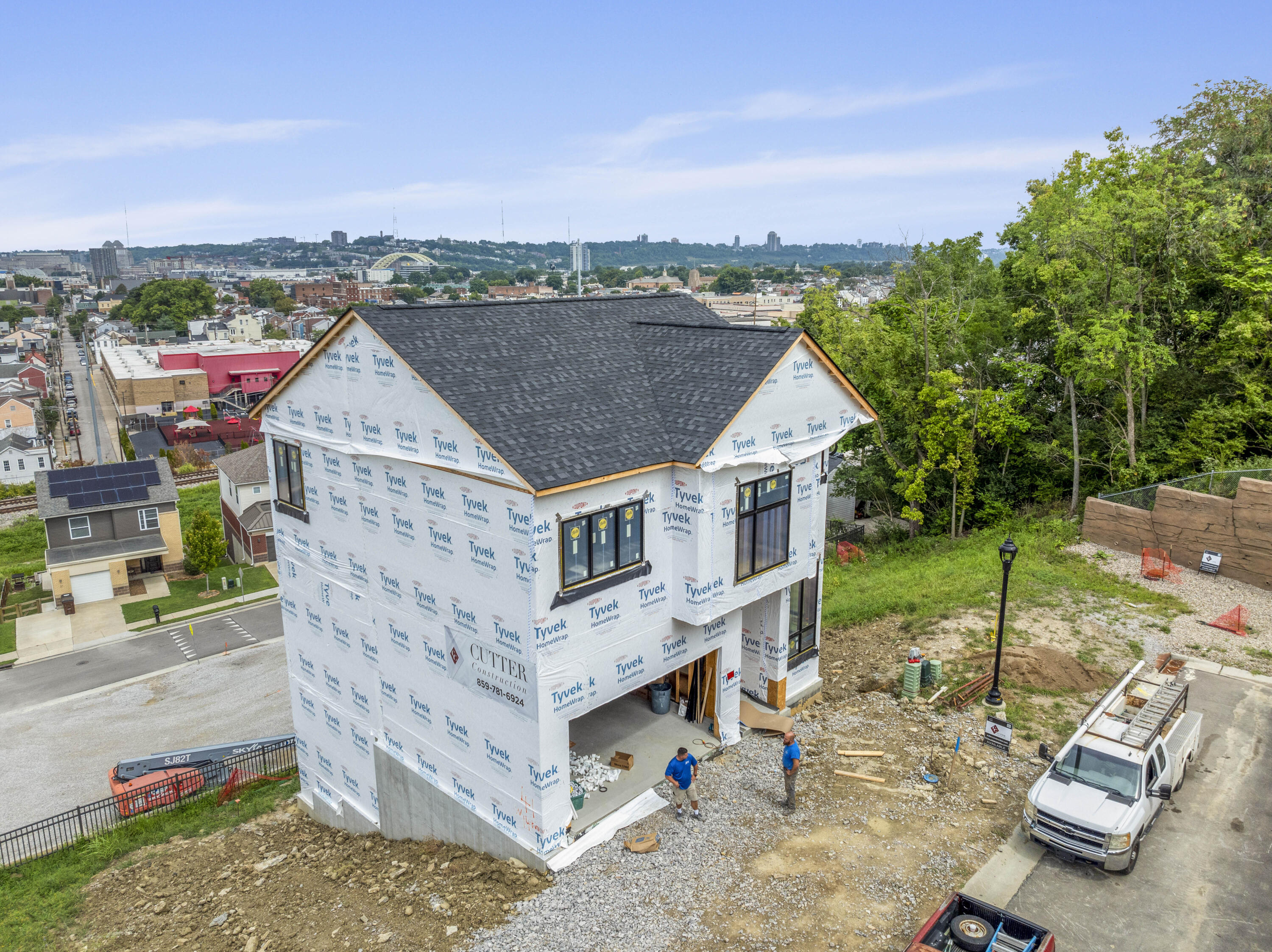 Welcome to Martin's Gate, where modern luxury meets stunning views of Cincinnati. Inside this Cutter Construction custom build, you'll find 2,873sf of high-end finishes, designer lighting, premium flooring, and top-quality appliances. An in-home elevator makes navigating all three levels effortless. The entry level is devoted entirely to the primary suite, offering comfort and privacy. The lower level features two additional bedrooms (one with direct backyard access) plus a full bath, generous closets, and a spacious laundry room. The second level is designed for entertaining, with a bright great room, cozy fireplace, and a gourmet kitchen featuring quartz countertops and a double-door pantry. From the living area, step onto a covered porch overlooking the Cincinnati skyline. Located in Newport, KY—the site of Homearama 2023—this remarkable home is just minutes from downtown Newport and Cincinnati. Construction will be completed early 2026. See attached for more details.
